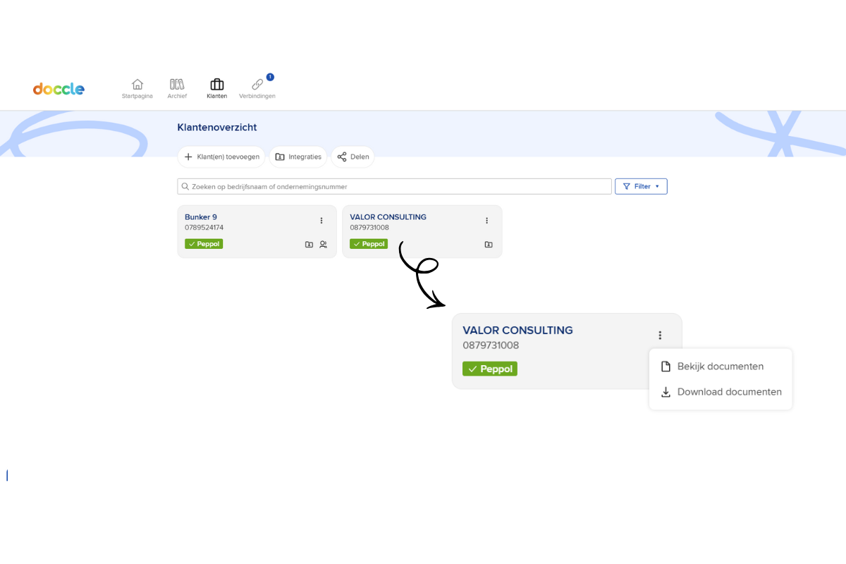 Vanuit het klantenoverzicht ben je in staat om te filteren per klant in je archief.